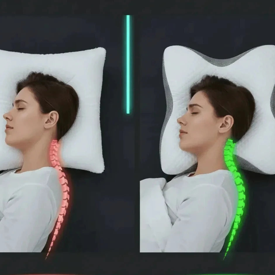 - Descompresión Instantánea: Nuestra cavidad central está diseñada para acunar el cráneo mientras el soporte inferior "estira" suavemente las vértebras cervicales.